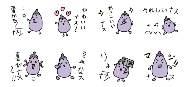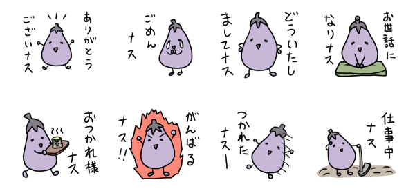 ということで、ラインスタンプで作るのはナスさんにしました。
